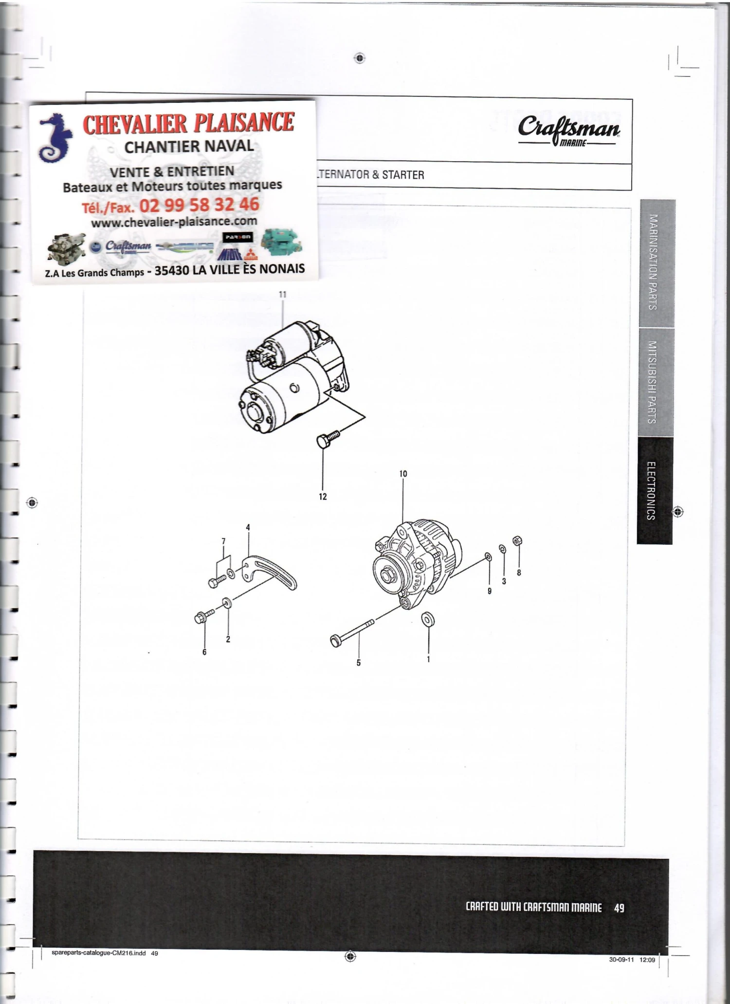 Alternateur 12 Volts 70 Ampères CRAFTSMAN MARINE DIESEL