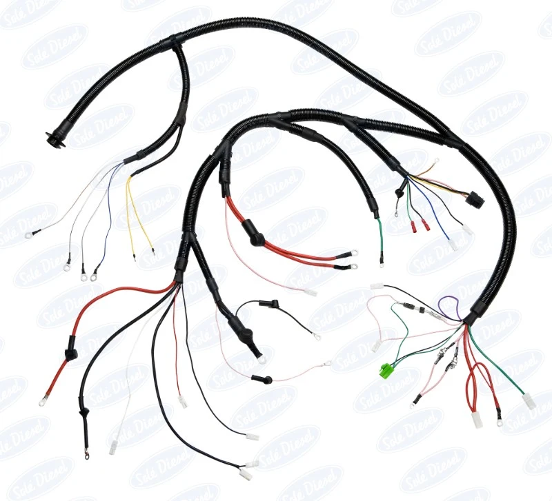 Araignée Moteur appelée « Wiring engine » faisceau élecrtique moteur directement installé sur le moteur, permettant de relier les instruments et commandes entre eux: comme bougies de préchauffage, électrovanne de coupure, fusibles, relais, circuit de commande de démarrage, compte tours, alternateur excitation,…..