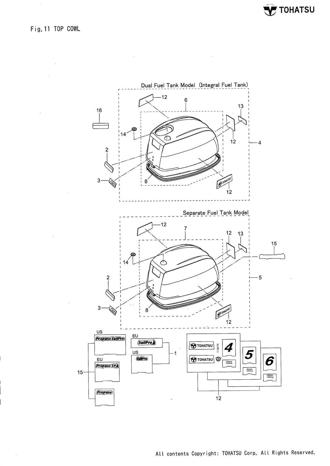 Autocollant pour Capot moteur nouveau modèle Moteur Tohatsu MFS5D 3WK-87801-0: Ensemble de pièces N° 12
