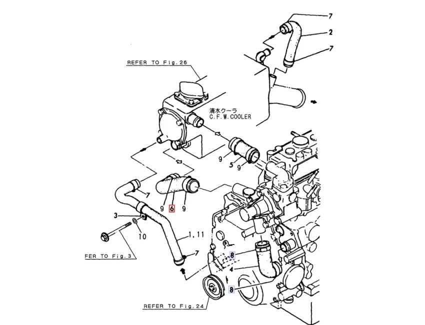Durite de refroidissement (liaison pompe de circulation vers bas échangeur) pour moteur YANMAR Série: 2GMF 2GM20F