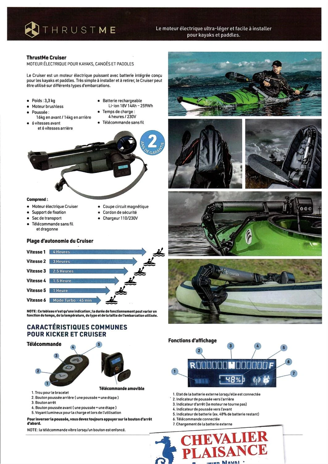 Le moteur Ă©lectrique Cruiser de THRUSTME est un moteur hors-bord tout-en-un, idĂ©al pour les petites embarcations telles qu’un kayak. Parfait pour motoriser votre Ă©quipement nautique de manière efficace & silencieuse, idĂ©al pour augmenter la distance de navigation ou vous aider physiquement, il est temps d’adopter le Cruiser !